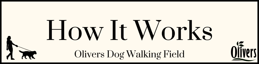 The dog field is just along the road from the garden centre, with its own car park (not accessible from the garden centre car park) – keep an eye out for the ‘Olivers Dog Walking Field’ signs