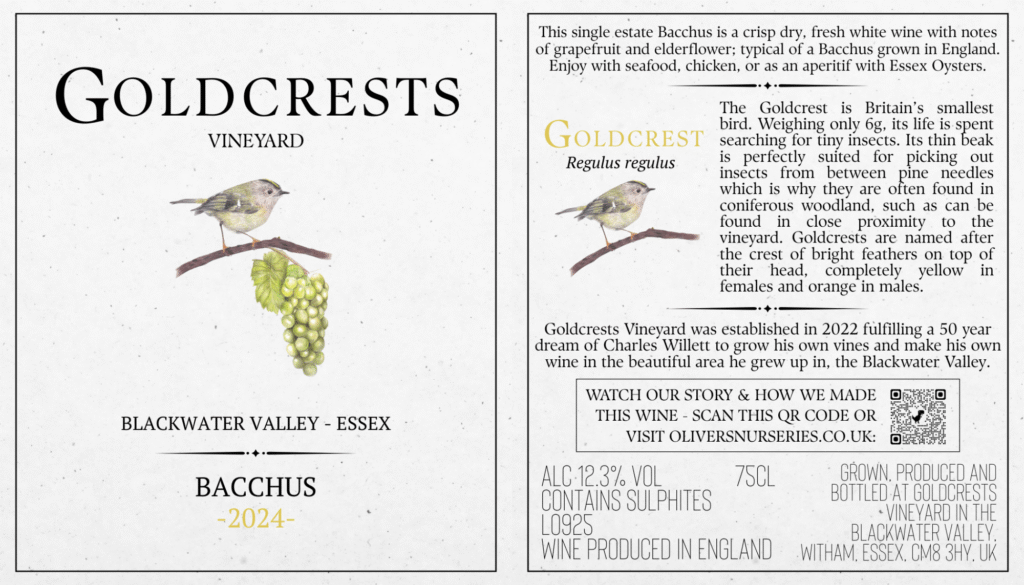 Introducing… Goldcrests Wine! Grown, produced and bottled right here at Olivers!