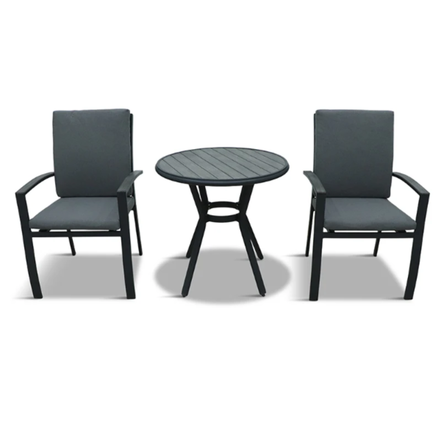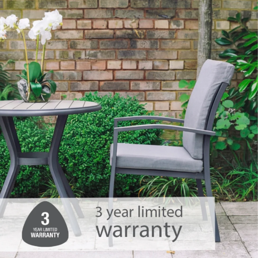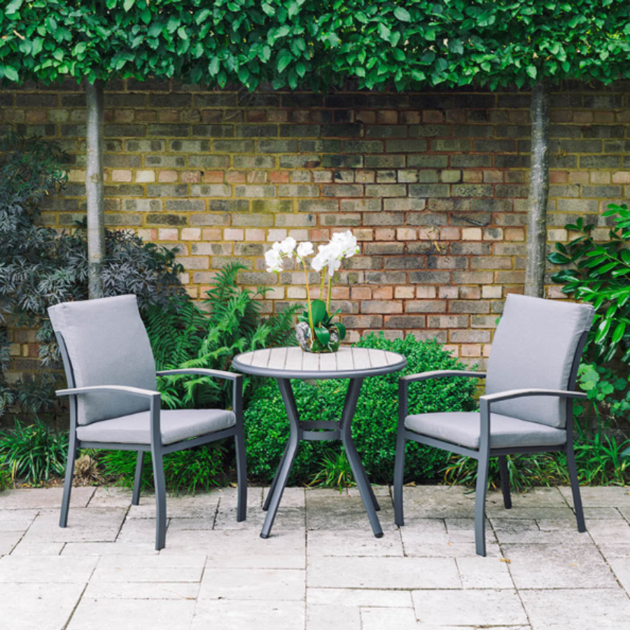 The Turin Bistro Set includes stackable dining chairs and a 75cm bistro table