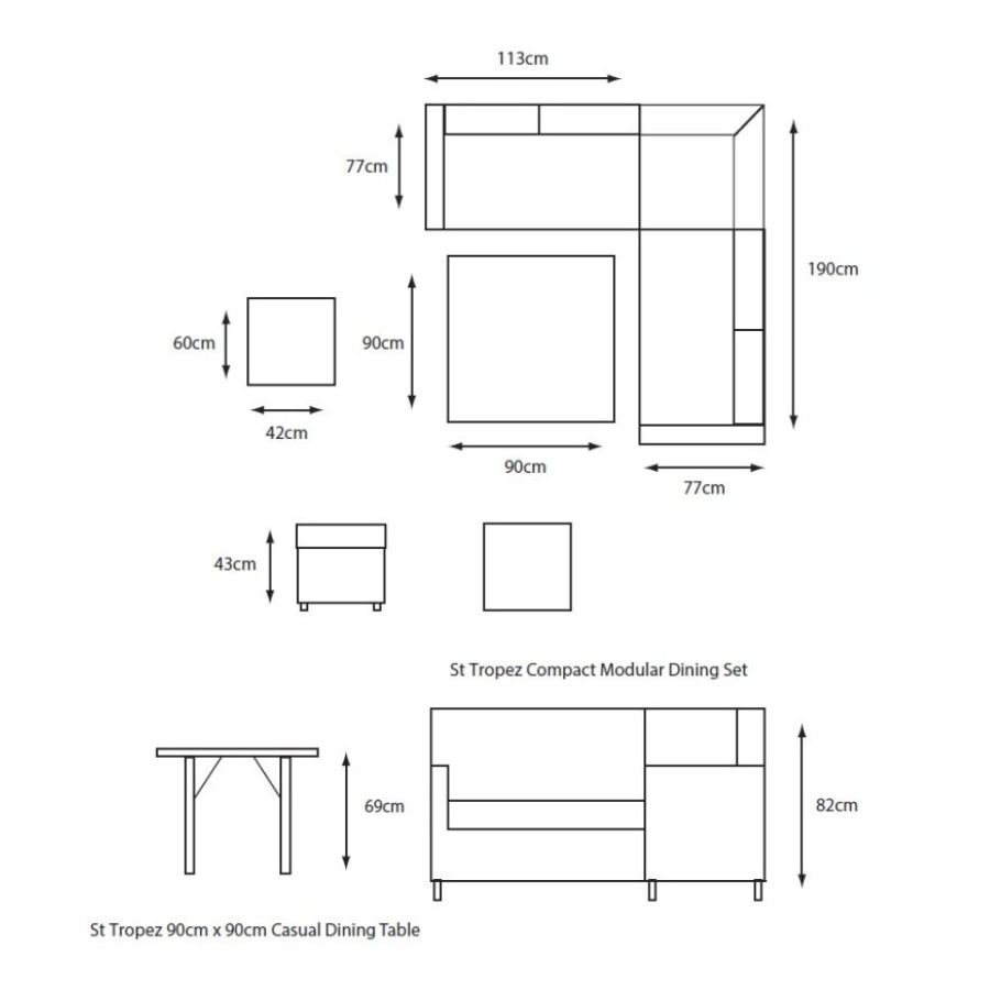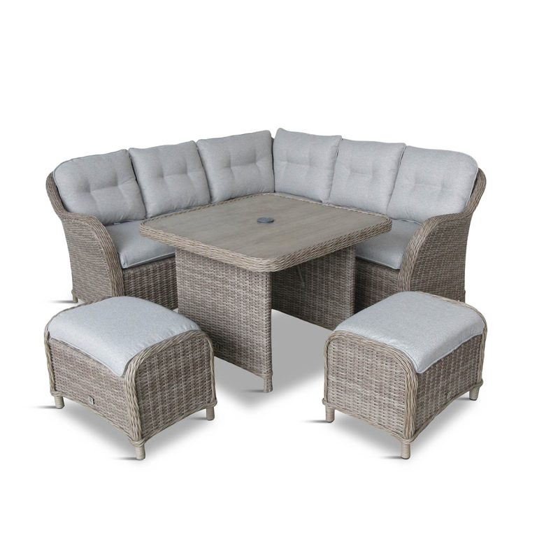 The St Tropez Sand Compact Dining Set includes compact modular sofas plus two footstools.