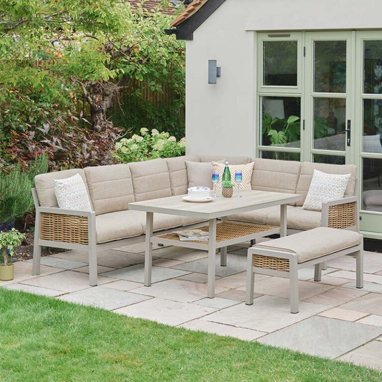 The cushions are filled with environmentally friendly EcoCore poly fibre filling, offering lasting comfort with a lower environmental impact. Lightweight powder-coated aluminium frames provide strength without bulk and deliver excellent UV resistance, ensuring long-term durability in outdoor conditions.